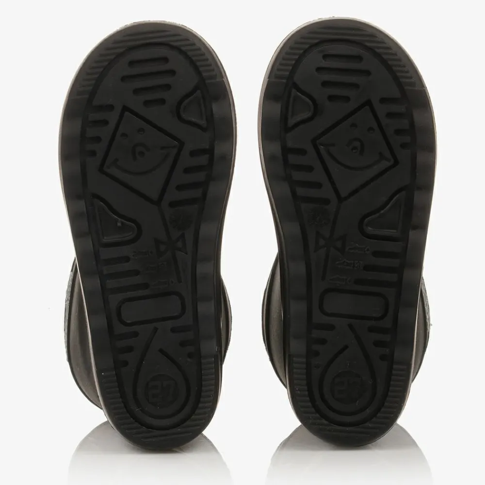 Black thermal rain boots for boys and girls by Danish brand EN FANT, in super flexible eco-friendly rubber. They have a seamless waterproof exterior to keep their feet dry and a reflective logo on the side for high visibility. Warm down to -30*C, they are lined in plush wool with an aluminium membrane for added insulation. They have a good grip on wet and icy surfaces thanks to the non-slip sole.