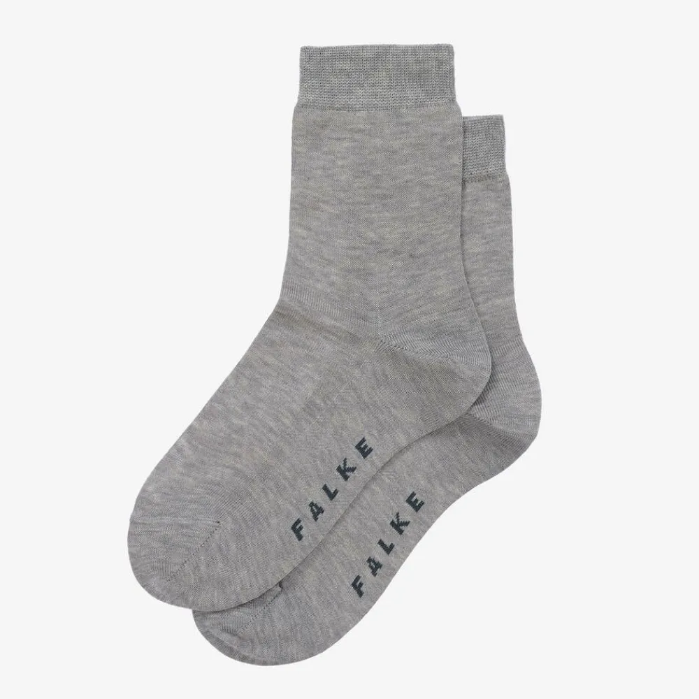A pair of grey luxury ankle socks for boys and girls by Falke. Made from a fine fil d'Ecosse cotton, with a slightly silky look. They have gently ribbed cuffs and reinforced stress zones for added durability.