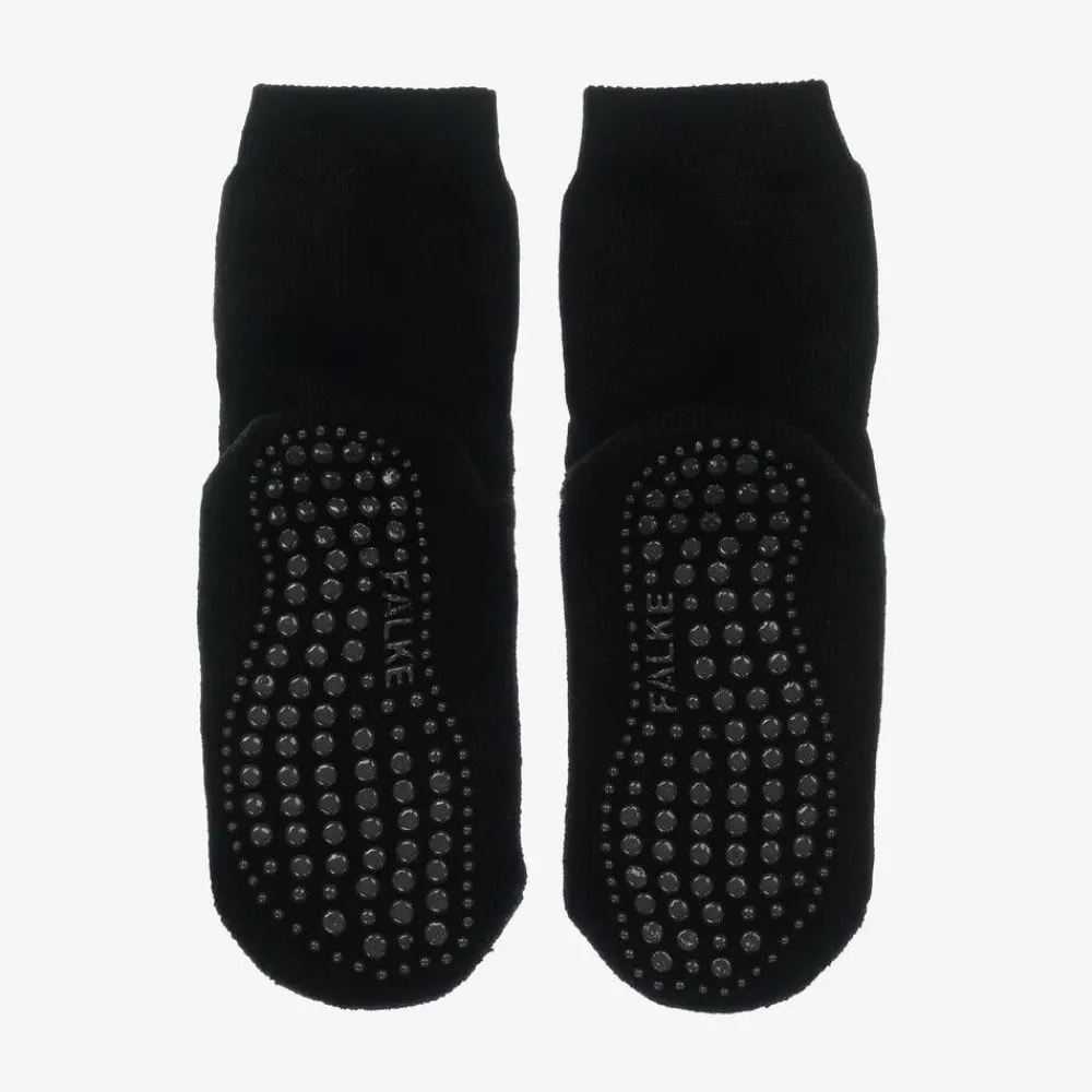 Durable and functional, these black slipper socks for boys and girls are from Falke. They are made in a super soft cotton and wool blend, cushioned for comfort with stretchy elasticated trims. These high-quality socks are finished with rubberised pads on the soles, offering anti-slip stability for playful kids.