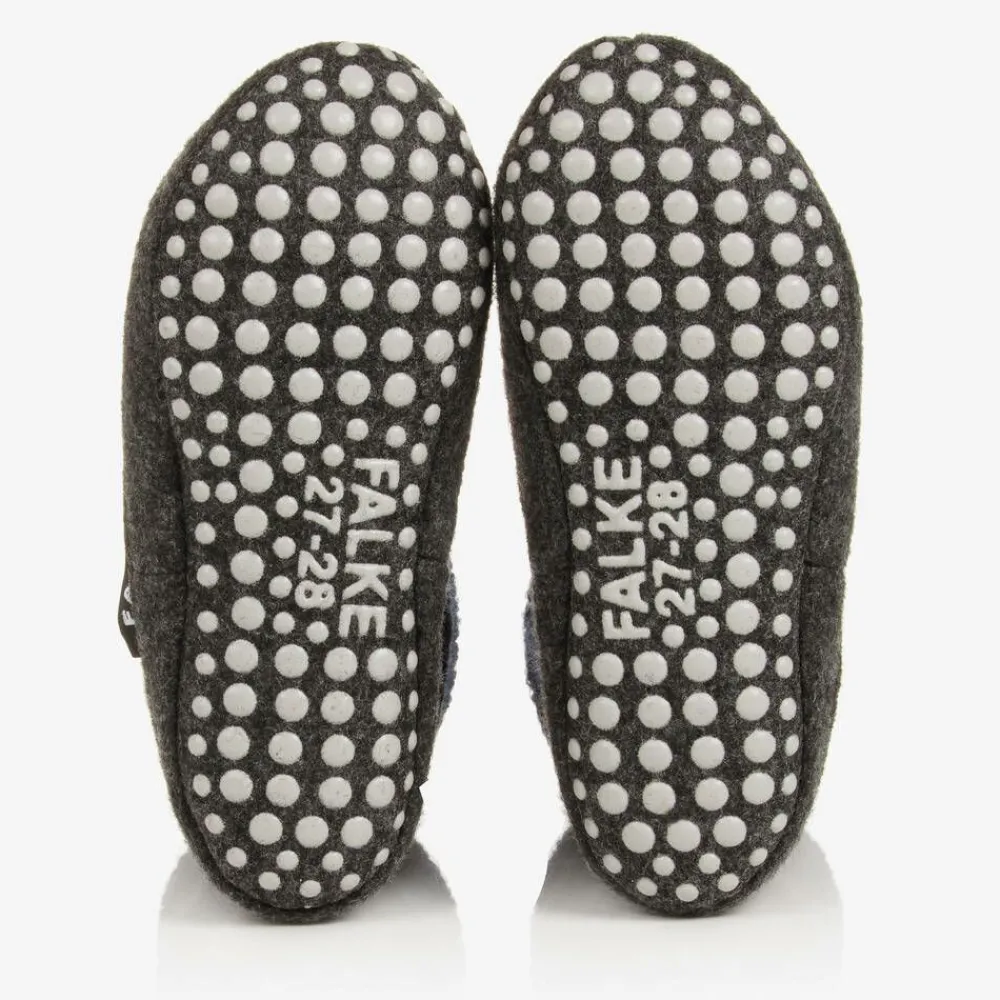 A durable pair of navy blue slipper socks for boys and girls by Falke, knitted in a soft Merino wool blend. Great for indoor use, these ergonomic socks have cosy fold-over cuffs, and a sturdy felt sole. The soles are finished with anti-slip rubberised pads, offering improved grip on smooth surfaces.