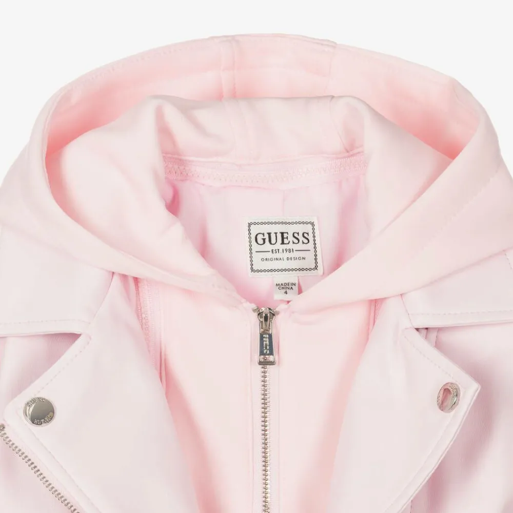 Guess Coats & Jackets*Girls Pink Faux Leather Biker Jacket