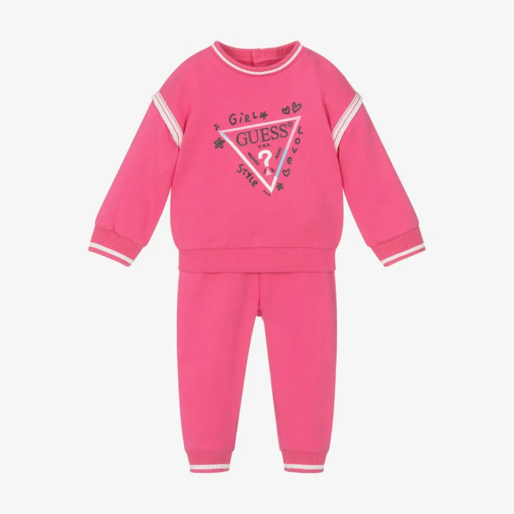 Guess Tracksuits|Tracksuits*Baby Girls Pink Cotton Triangle Tracksuit