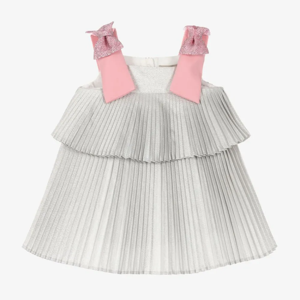 Hucklebones London Dresses*Baby Girls Glittery Silver Pleated Dress