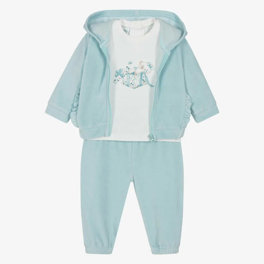 iDO Mini Tracksuits*Baby Girls Blue Velour Tracksuit Set
