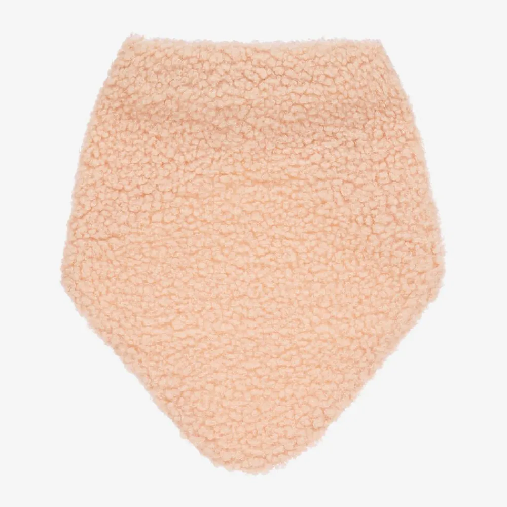 Cosy and comfortable for baby girls, an ivory bouclé scarf by Polish brand Jamiks. This bandana-style neck warmer has a soft cotton jersey lining and fastens easily with a single popper behind the neck.