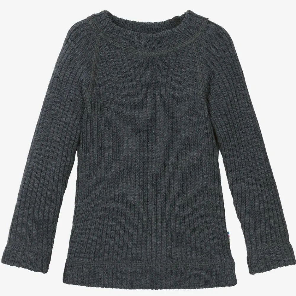 A dark grey ribbed thermal sweater for little boys and girls by Joha, made in a beautifully soft and stretchy Merino wool knit. Great for layering, it can be used as a base layer or as a cosy sweater. Designed to naturally regulate body temperature, this comfortable top has a rounded neckline and stretchy ribbed trims.