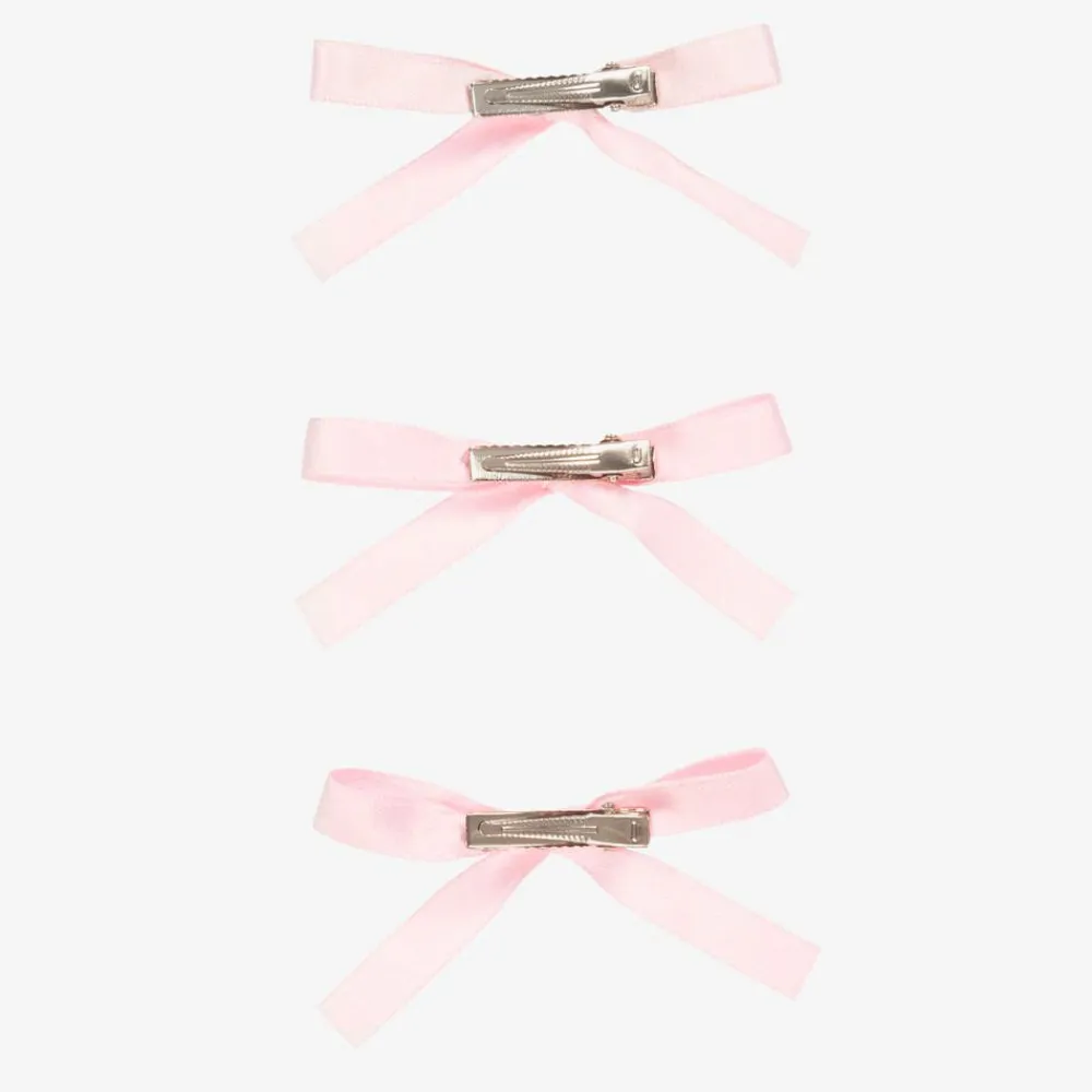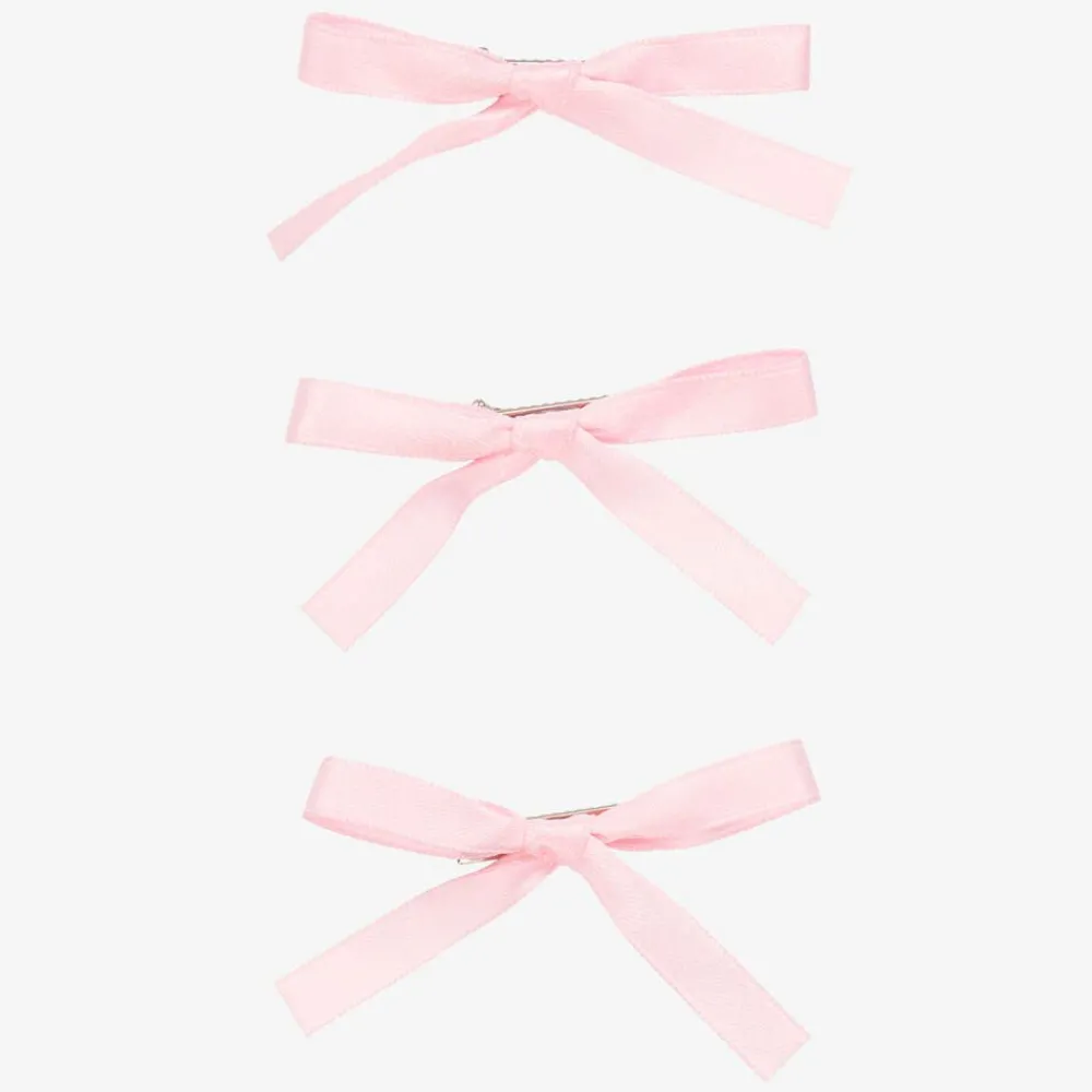 Junona Hair Accessories*Girls Pink Satin Bow Hair Clips (3 Pack)