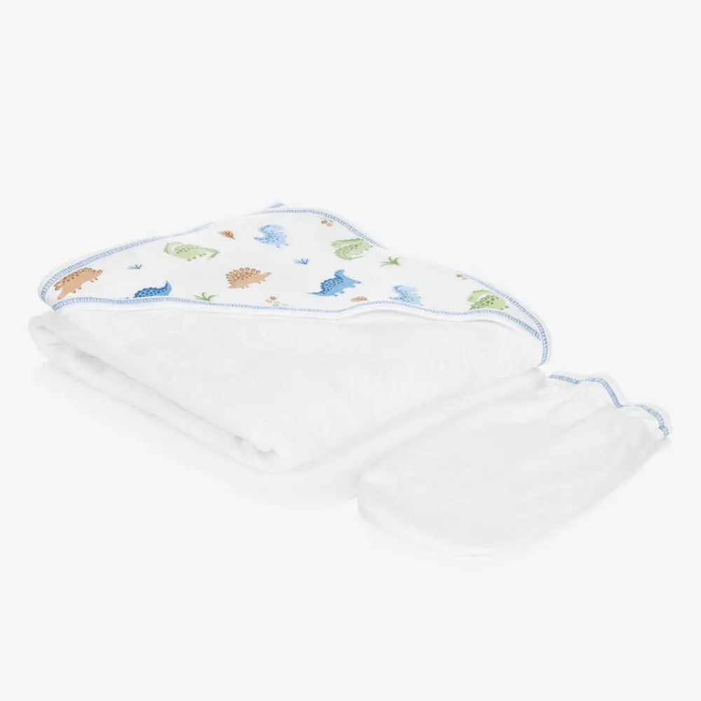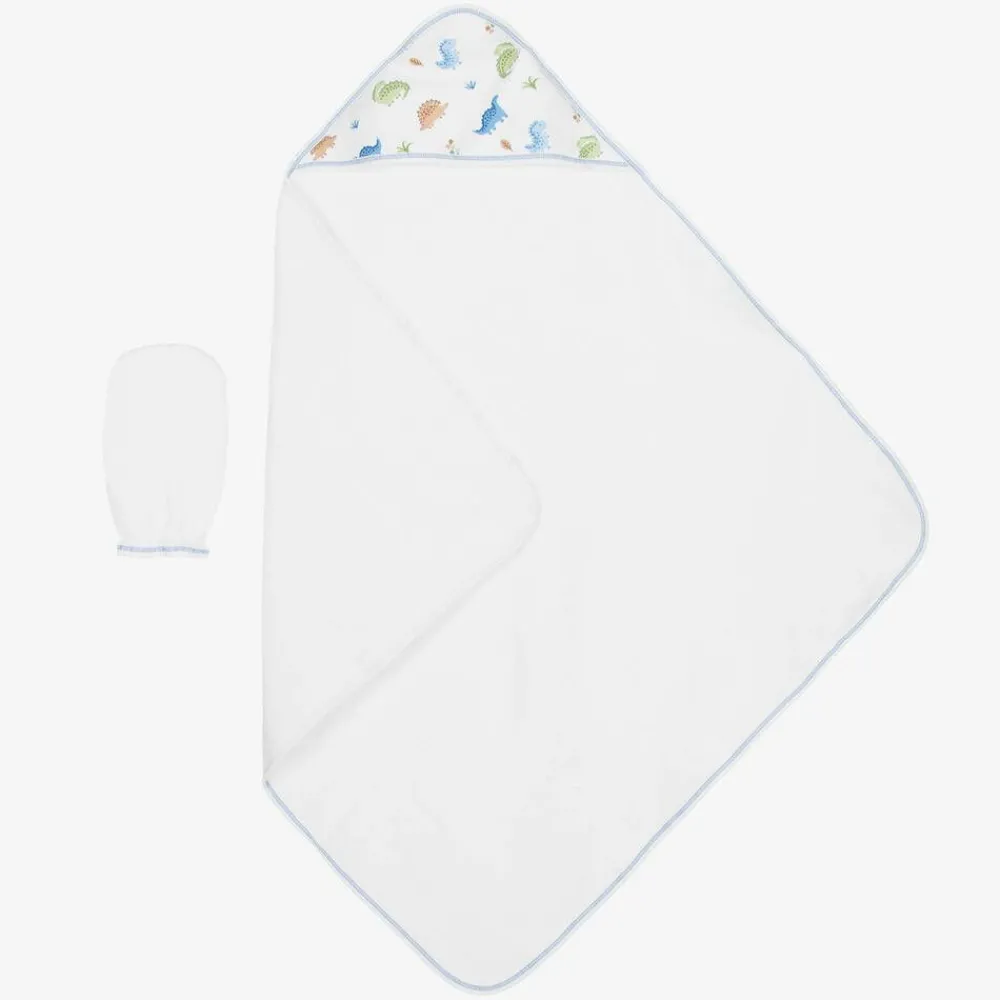 Kissy Kissy Towels & Robes*Boys White Dino Domain Hooded Towel & Mitt Set