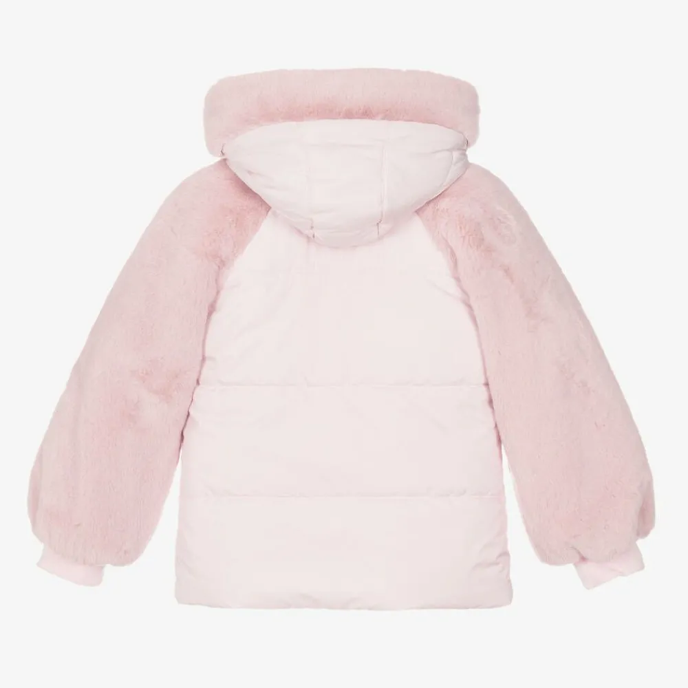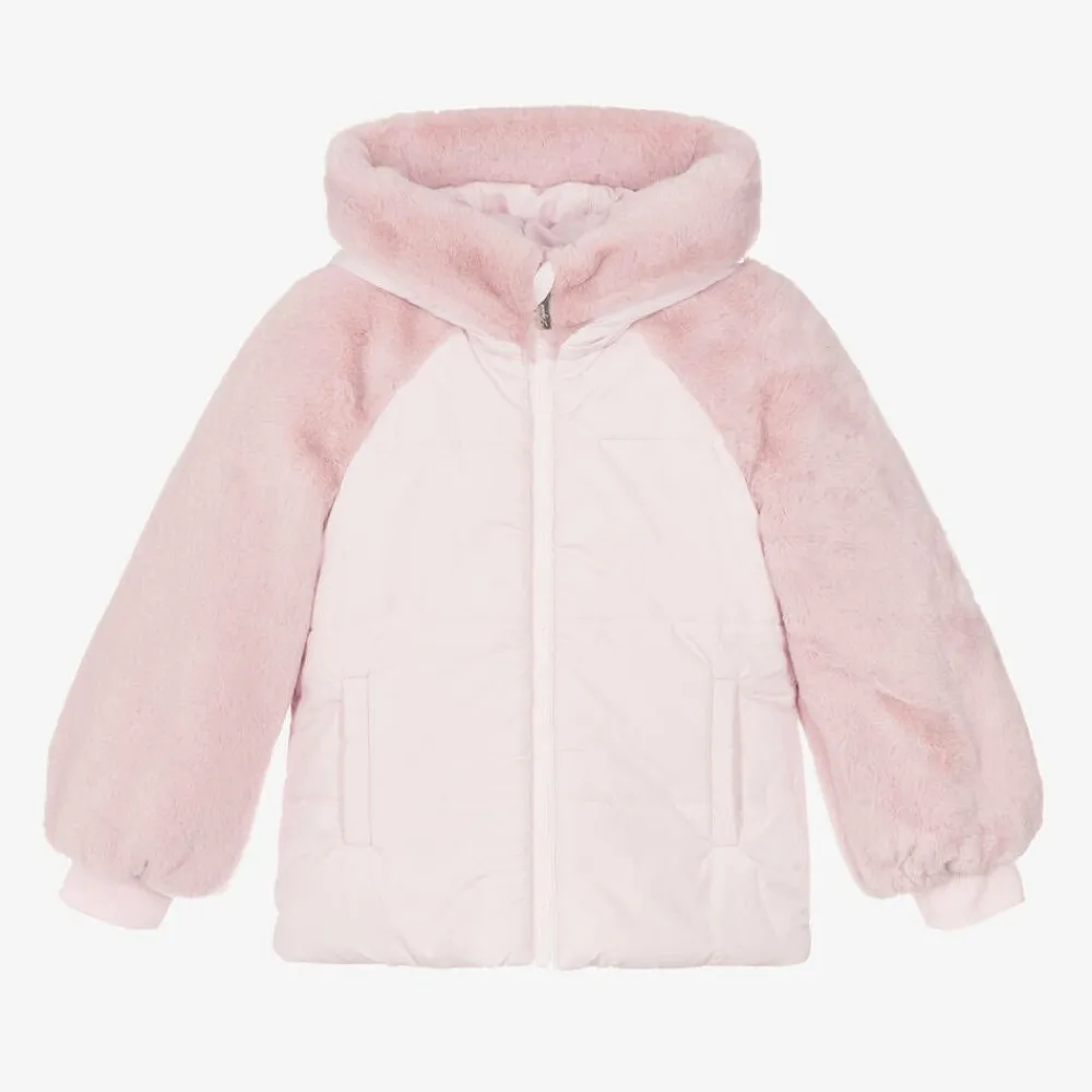 Lapin House Coats & Jackets*Girls Pink Faux Fur Hooded Jacket