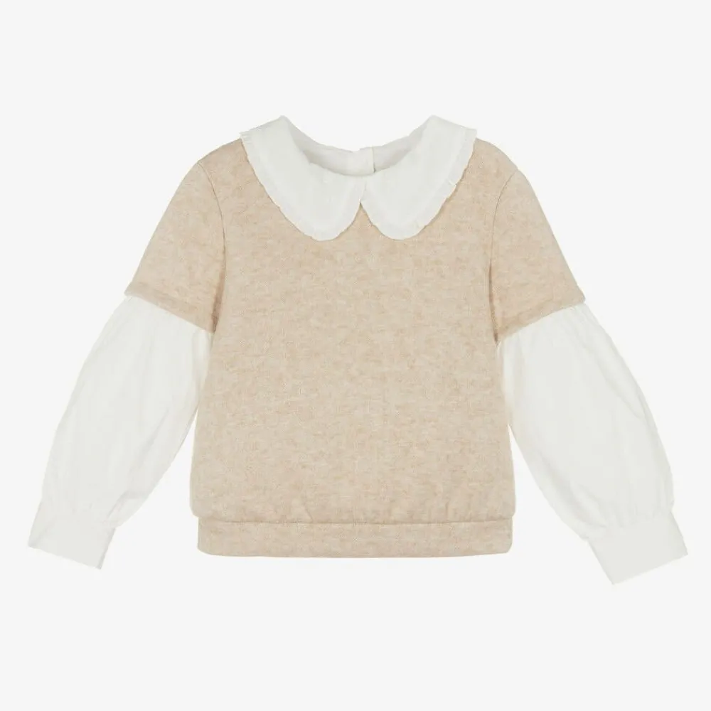 Lapin House Tops*Girls Beige Cotton Layered Sweatshirt