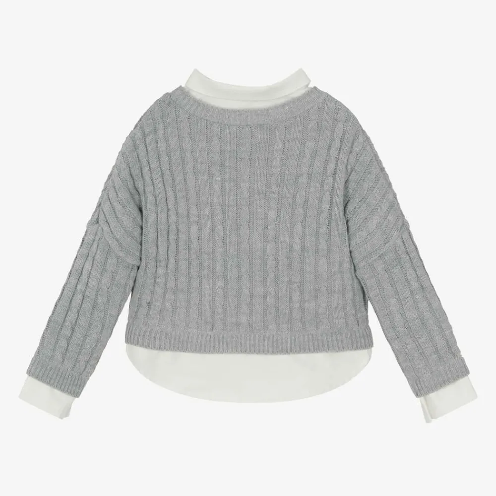 Lapin House Tops*Girls Grey Cable Knit Layered Sweater