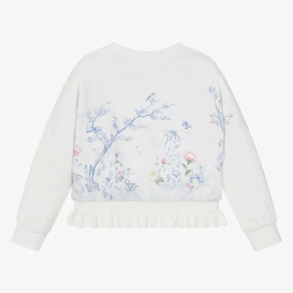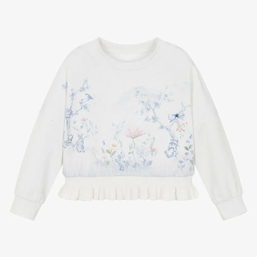 Lapin House Tops*Girls Ivory Woodland Print Cotton Sweatshirt