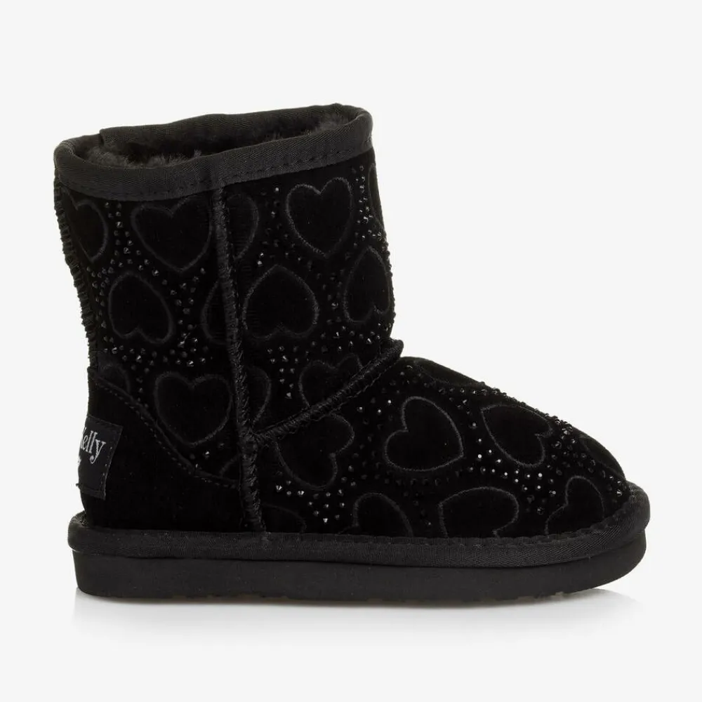 Lelli Kelly Boots|Boots*Girls Black Heart & Diamanté Suede Boots