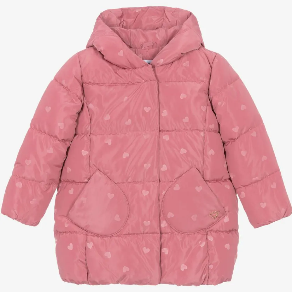 Mayoral Coats & Jackets*Girls Pink Heart Puffer Coat