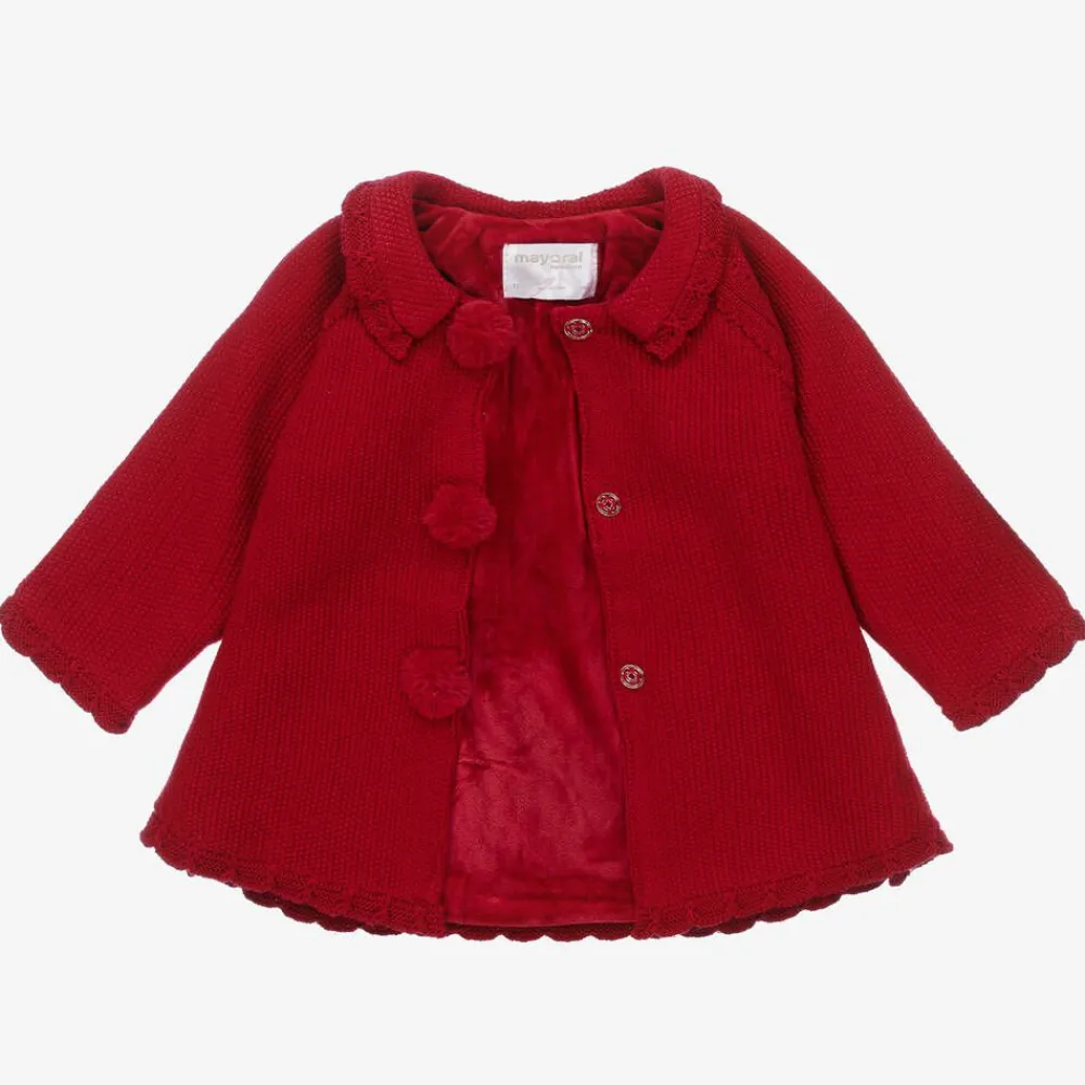 Mayoral Coats & Jackets*Girls Red Knitted Pram Coat & Hat Set