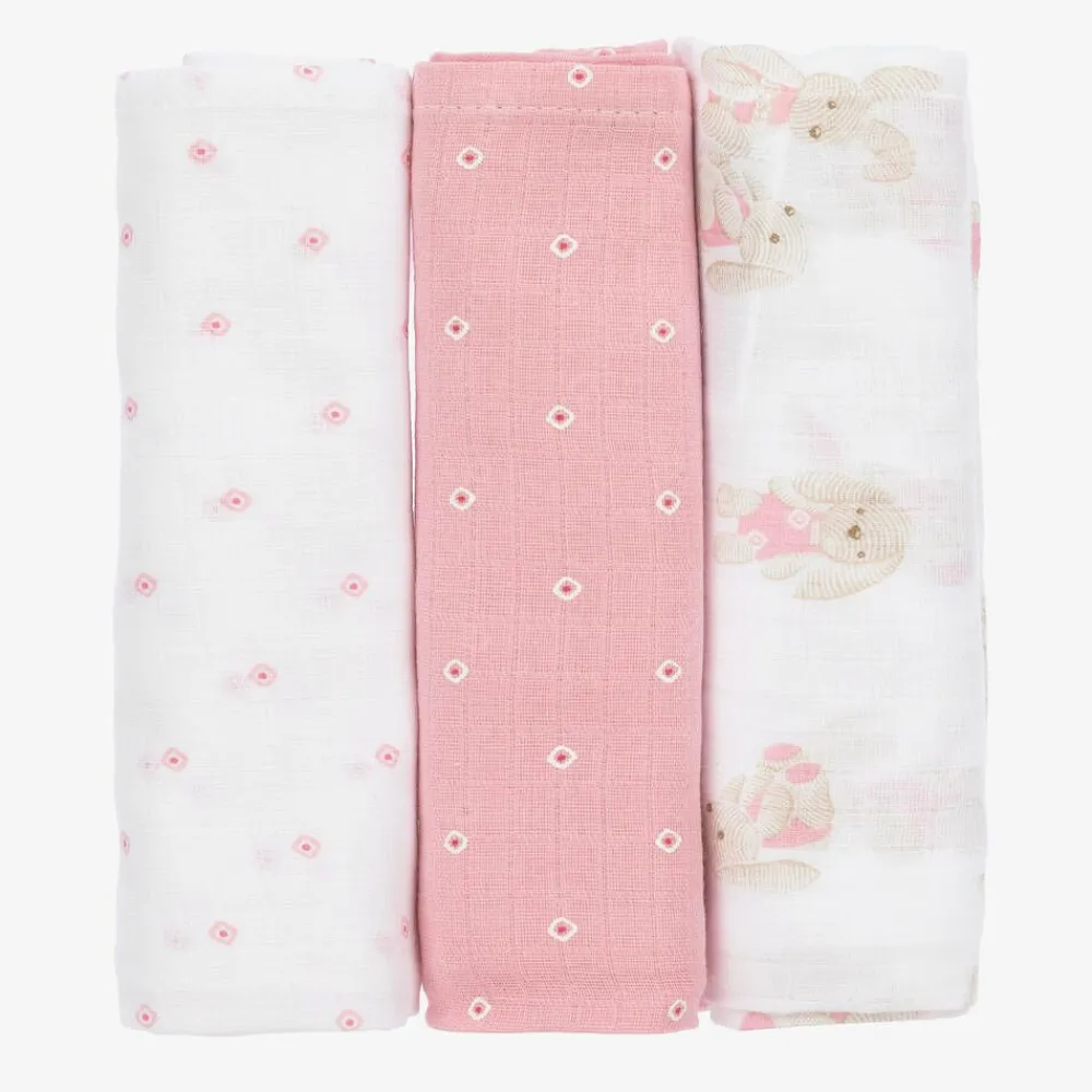 Mayoral Feeding Accessories*Baby Girls Pink Cotton Muslins (3 Pack)