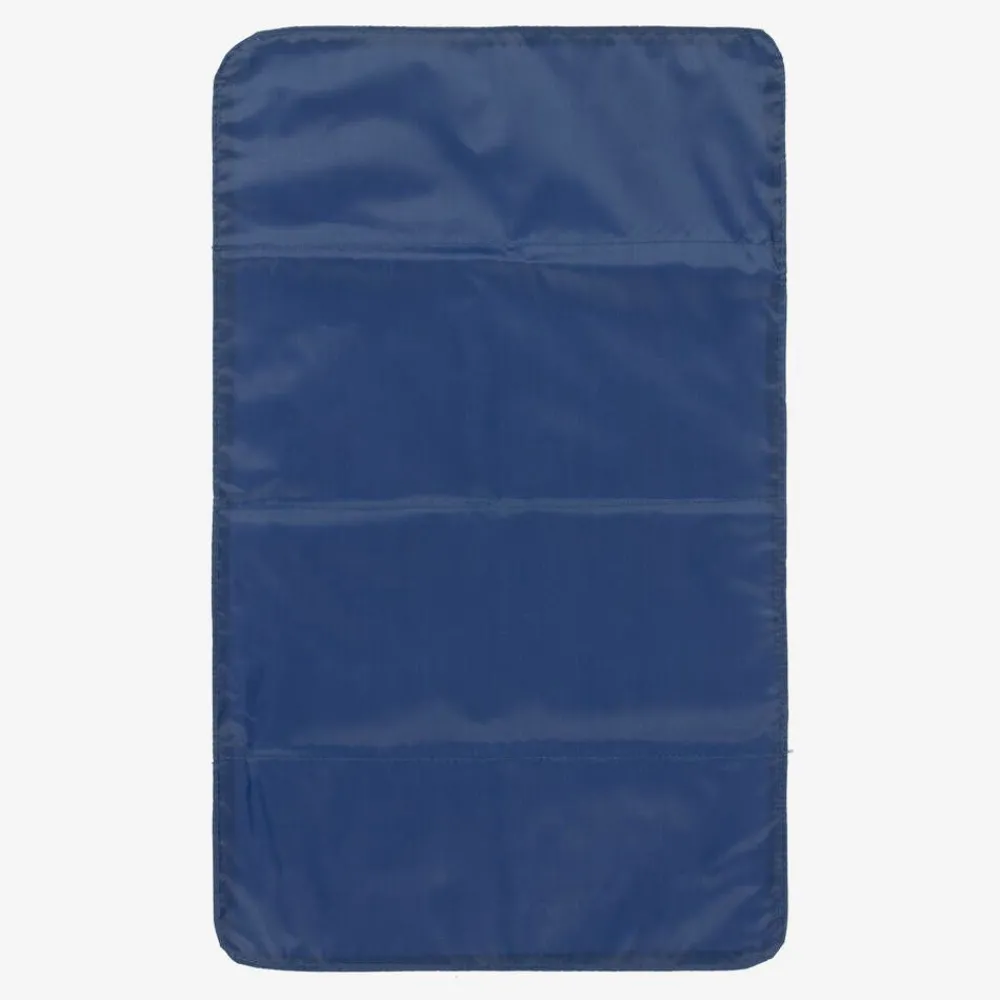 Blue with an all-over star-print, this backpack-style changing bag is by Mayoral. Made in soft cotton canvas with faux leather trims, it has a zipped main compartment, with inner and outer pockets for storing baby's essentials, including an internal insulated bottle holder and changing mat. There are adjustable padded shoulder straps, a carry handle, and useful stroller straps to clip onto the bag of a buggy. The bag has a silver logo print on the front, with a cute faux leather teddy decoration.