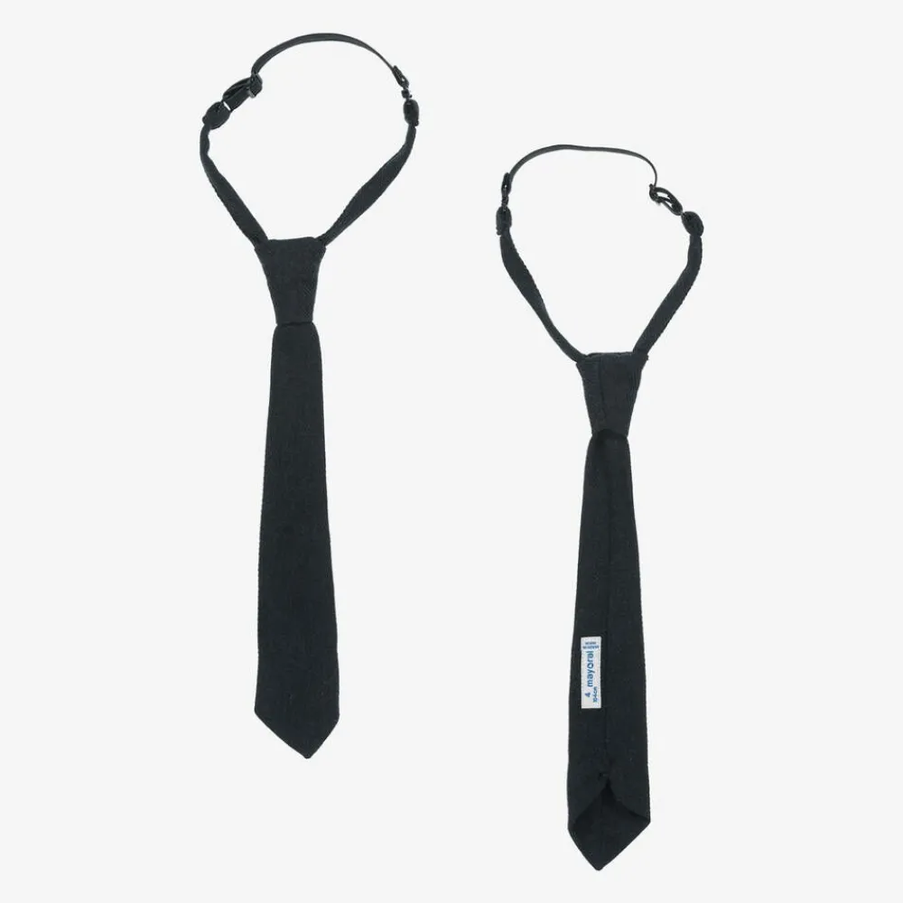 Smart blue shirt for boys by Mayoral, made in soft and lightweight cotton. Slim-fitting, it has a tonal pinstripe design and pearlescent button fastenings on the front and the cuffs. To accessorise the look with a timeless touch, it comes with a clip-fastening grey tie.