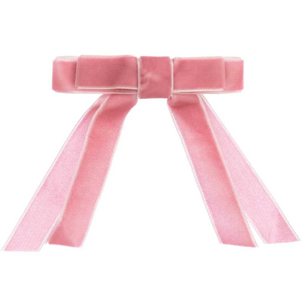 A pretty velvet ribbon hair clip for girls by Milledeux. The pink bow sits on a nickle free metal clip.