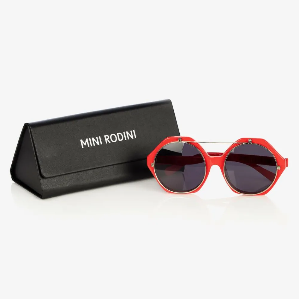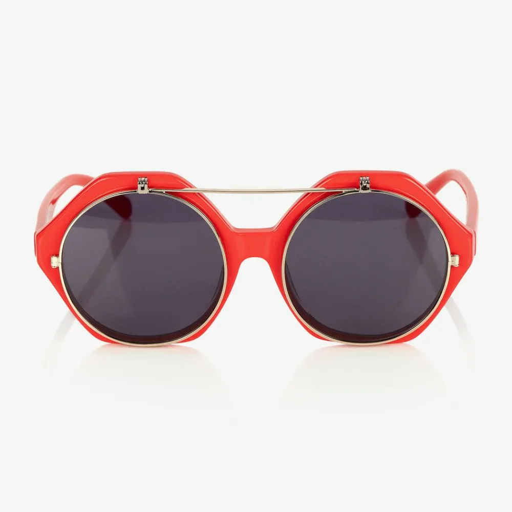 Fun red sunglasses for boys and girls by Mini Rodini, styled with lightly-tinted lenses with a cool flip-up feature. These hexagonal frames are ideal for accessorising with your child's sunny looks, whilst providing protection from harmful rays.