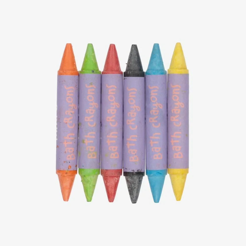 A pack of six bath crayons for little boys and girls by Mini U, with washable, plastic-free colours. Let little ones get creative during bathtime with these crayons that can be used for doodling on smooth surfaces, such as the bathtub or tiled walls. The set includes six colours: red, yellow, green, black, blue and orange.
