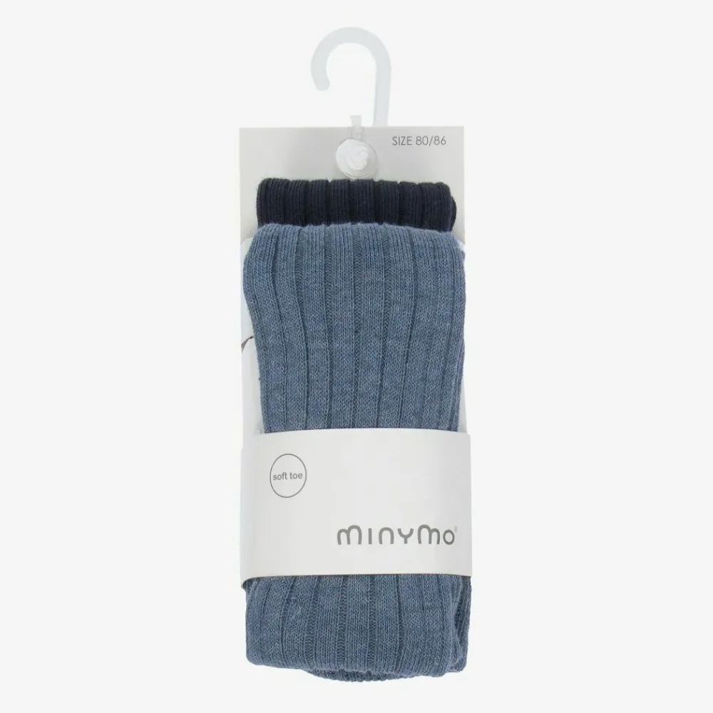 In navy blue and blue melange, these two pairs of ribbed tights for girls are by Danish brand Minymo. Made in a soft and stretchy cotton blend, they have soft toes and a gently ribbed waist.