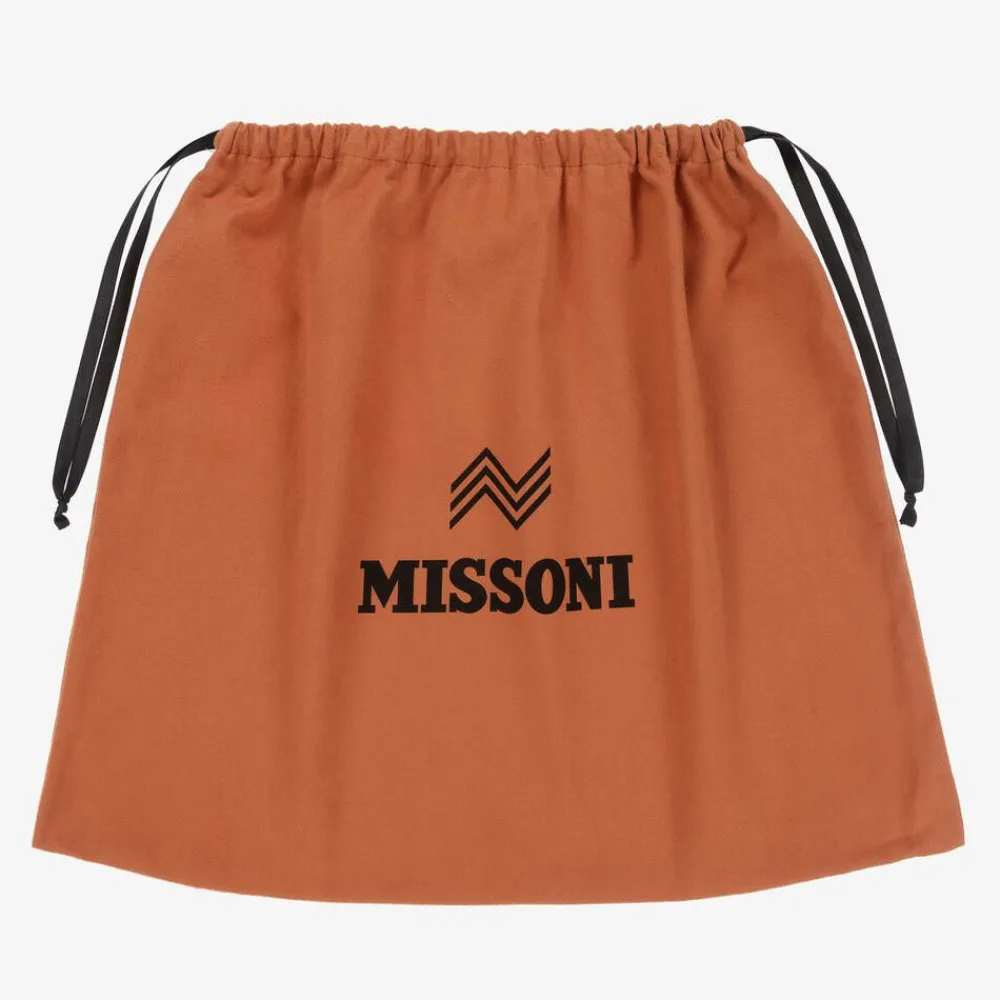 Orange and grey swim shorts by luxury Italian brand Missoni, a cool addition to boys' poolside pieces. Smooth and silky, they are patterned with the designer's distinctive zigzags and little logos in orange, grey, white and blue. They have useful side seam pockets, a comfortable mesh lining and a drawstring waist with logo branded end caps on the ties.