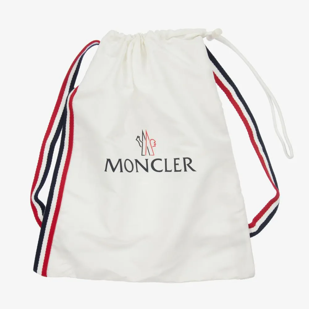 Ivory boots for boys and girls from Moncler Enfant, made in silky smooth, quilted nylon laquƩ. Ideal for stylish wear on the slopes or in the town, these cosy boots are luxuriously down-padded for lightweight warmth. A drawstring toggle opening helps to keep out the cold and snow and the flexible sole has defined treads for anti-slip wear. Each boot is complete with a mini, popper-fastening pocket, decorated with the signature felted logo badge.