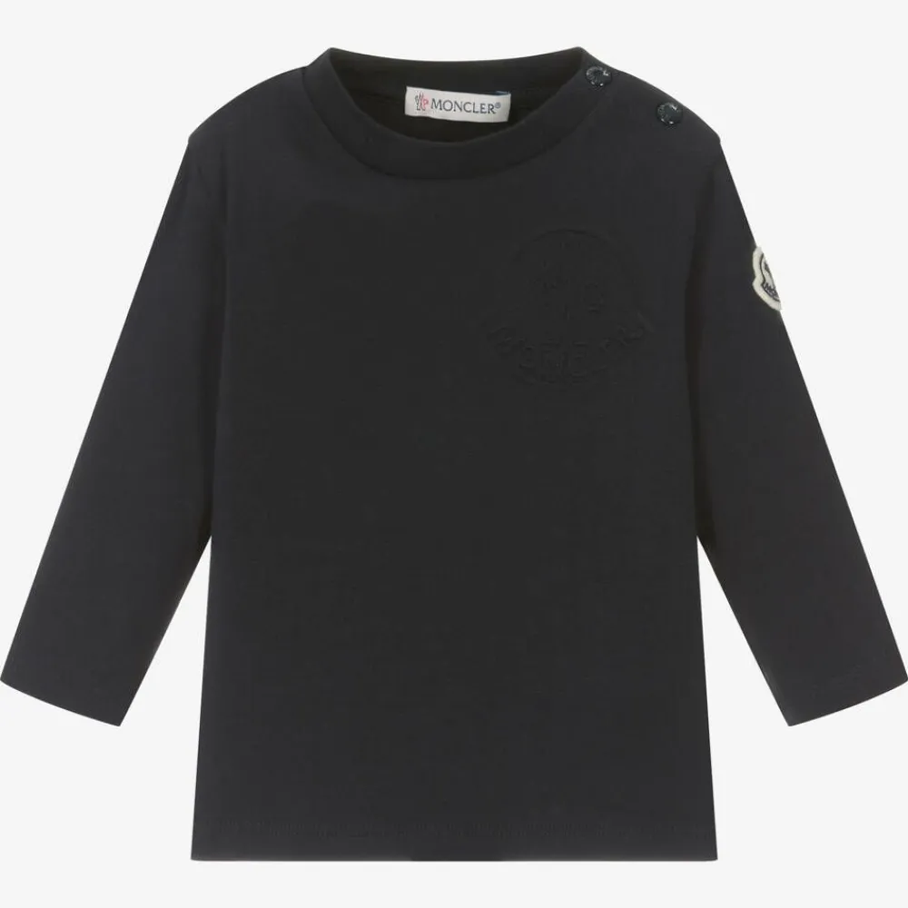 Moncler Enfant Tops*Boys Navy Blue Cotton Embossed Top