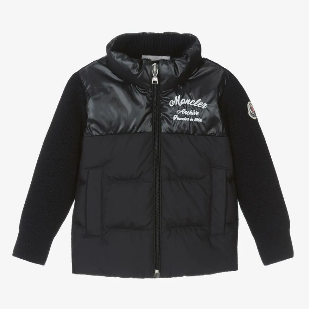 Moncler Enfant Tops*Boys Navy Blue Down Padded Knit Cardigan