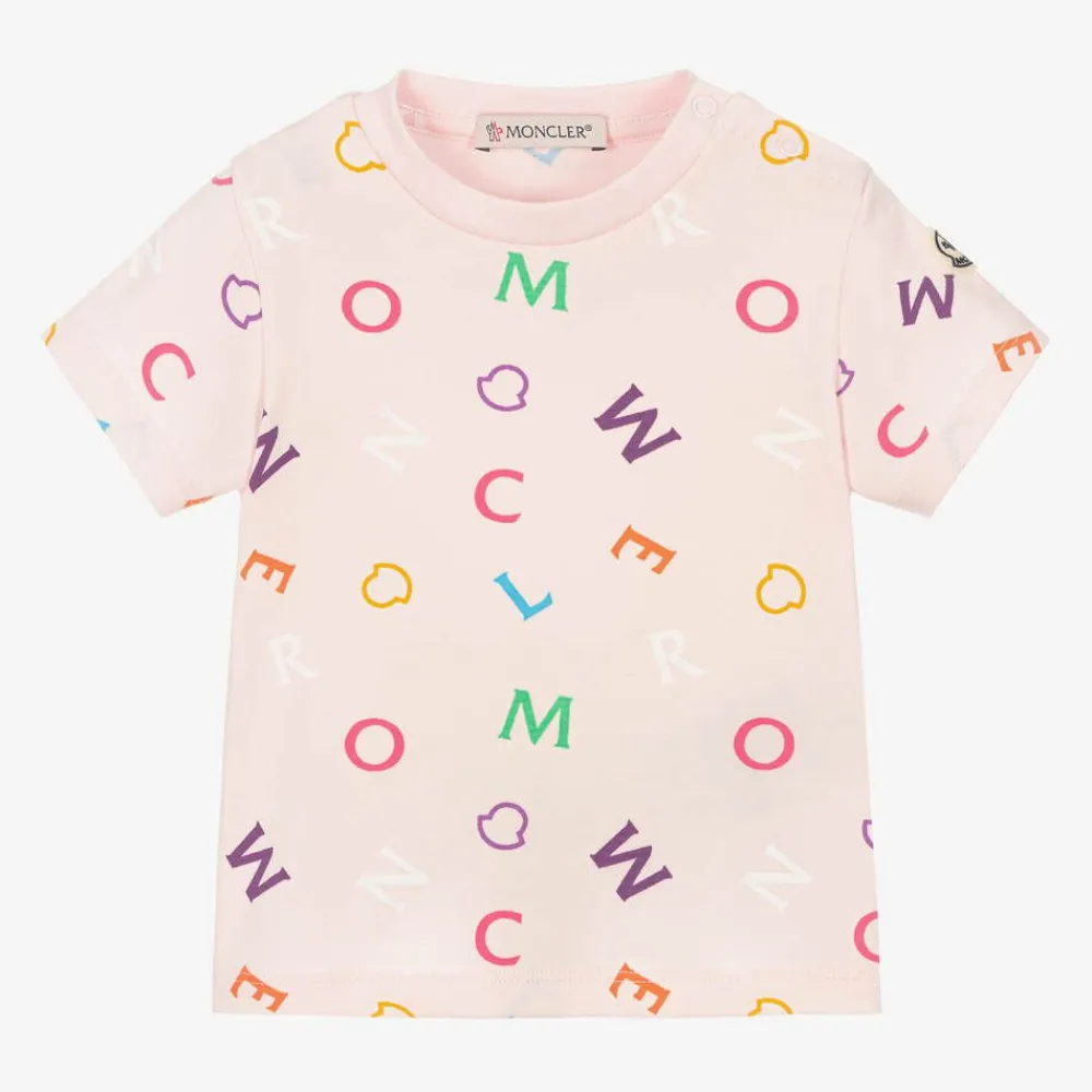 Moncler Enfant Tops*Girls Pink & Multi Logo T-Shirt