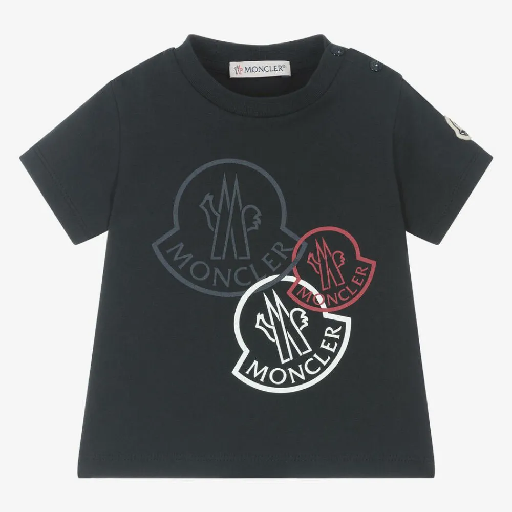 Moncler Enfant Tops*Navy Blue Cotton T-Shirt