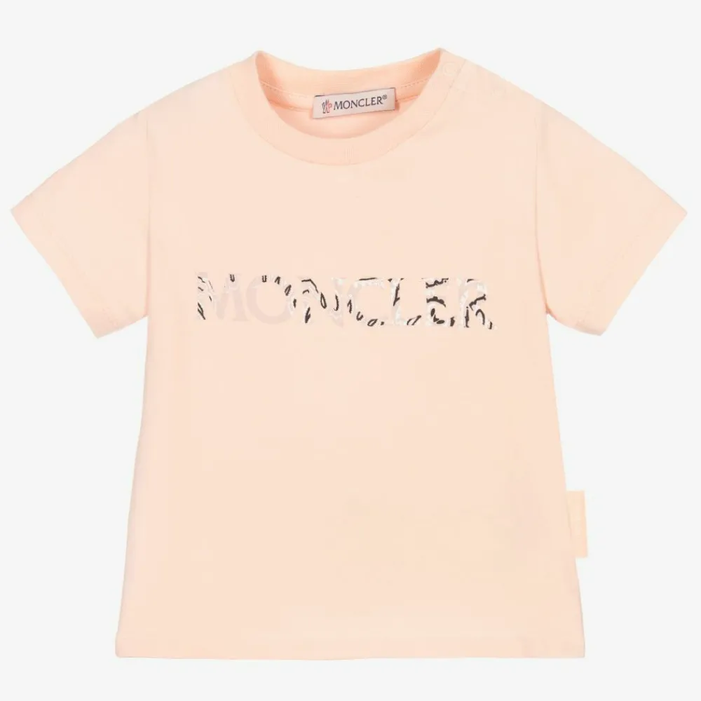 Moncler Enfant Tops*Pink Cotton Logo T-Shirt