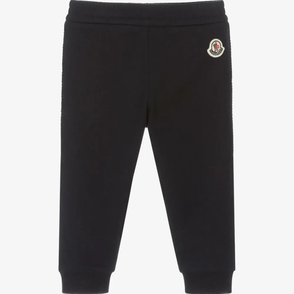 Moncler Enfant Trousers*Navy Blue Cotton Logo Joggers
