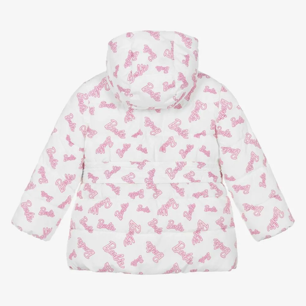 Monnalisa Coats & Jackets*Girls White & Pink Puffer Barbie Coat