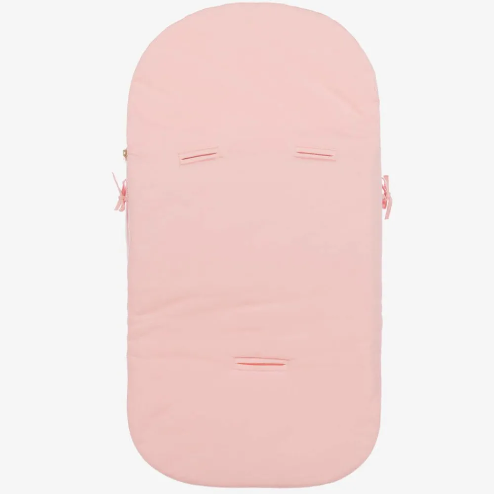 Light pink nest for baby girls by Moschino Baby, made from cotton jersey for a soft and snuggly feel. Soothing for baby, this padded nest is printed with bold logo lettering and three Moschino Teddy Bear characters. It fastens with a zip down one side and along the base. The white fold-down flap secures with ties at each side and the openings on the back mean it can be easily moved into the car seat or stroller. A black logo patch at the bottom adds further branding.