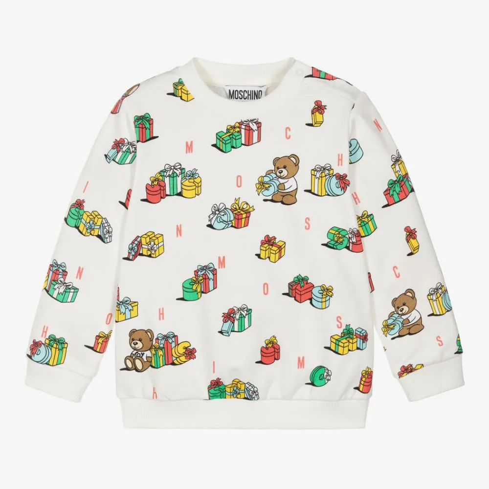 Moschino Baby Tops*Ivory Cotton Festive Gifts Sweatshirt