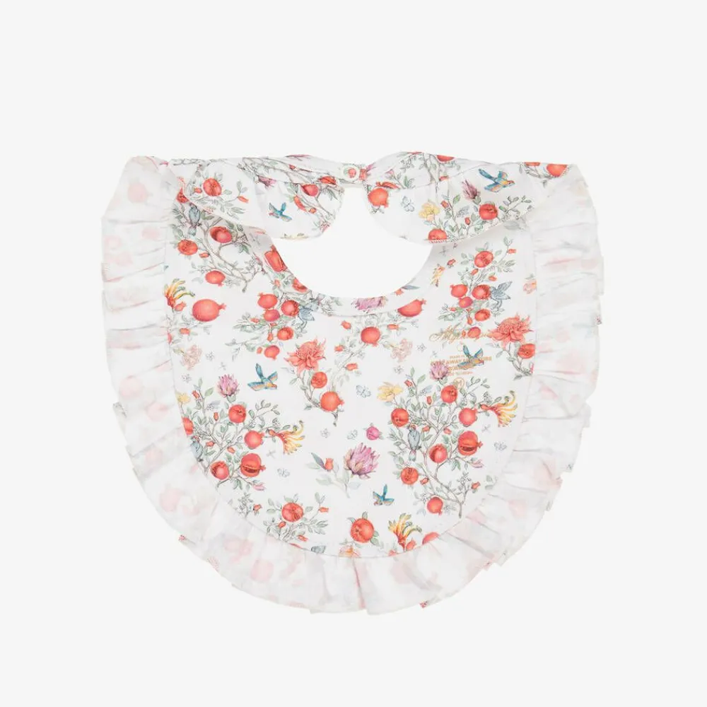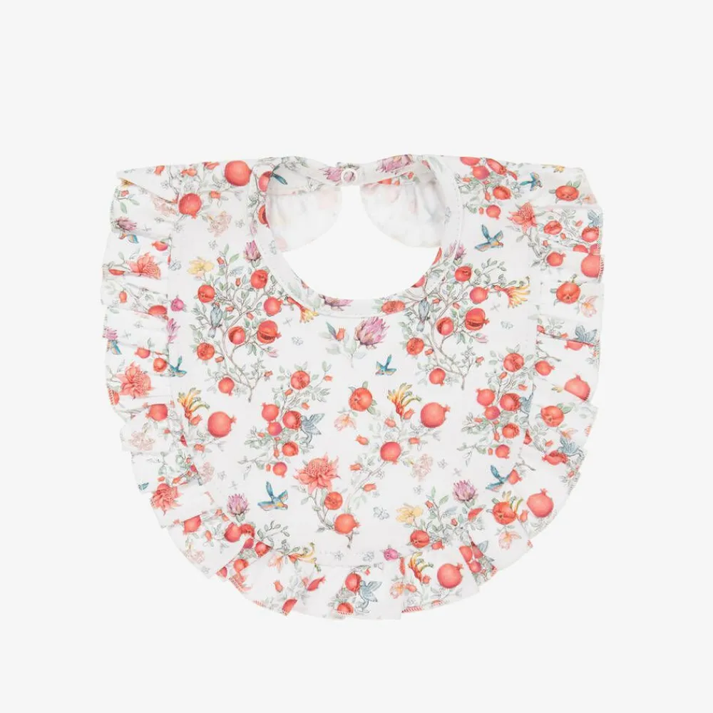 My Little Pie Feeding Accessories*Baby Girls White Supima Cotton Pomegranate Bib