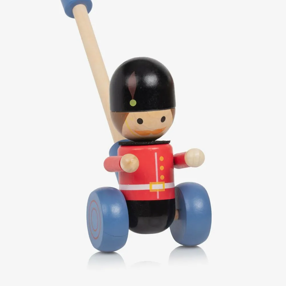 Fun push-along toy for little boys and girls by Orange Tree Toys, in the shape of an iconic London guardsman. This vibrant activity toy is made of smooth wood and encourages your child to find their feet whilst wheeling along their new little friend. It comes with two handles so the height can be adjusted as they grow.