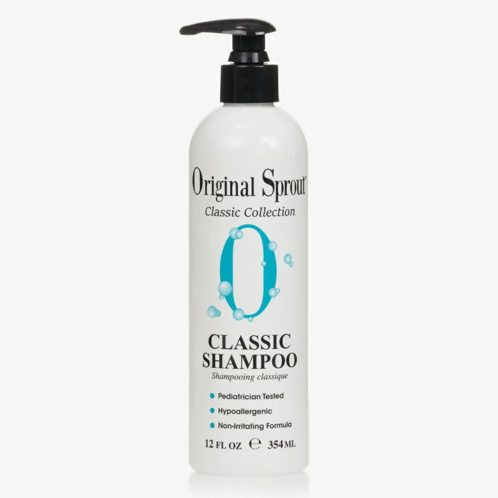 Mild Classic Shampoo by Original Sprout, suitable from birth. The moisturising formula is gentle on the eyes and is suitable for sensitive skin. Apply to hair and rinse clean easily for soft hair and healthy scalp.