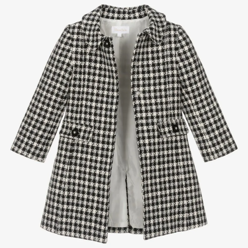 Patachou Coats & Jackets*Girls Black & Ivory Check Tweed Coat