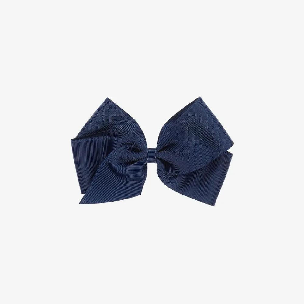 Girls lovely navy blue bow hair clip by Peach Ribbons, handmade from grosgrain ribbon and set on a metal clip.