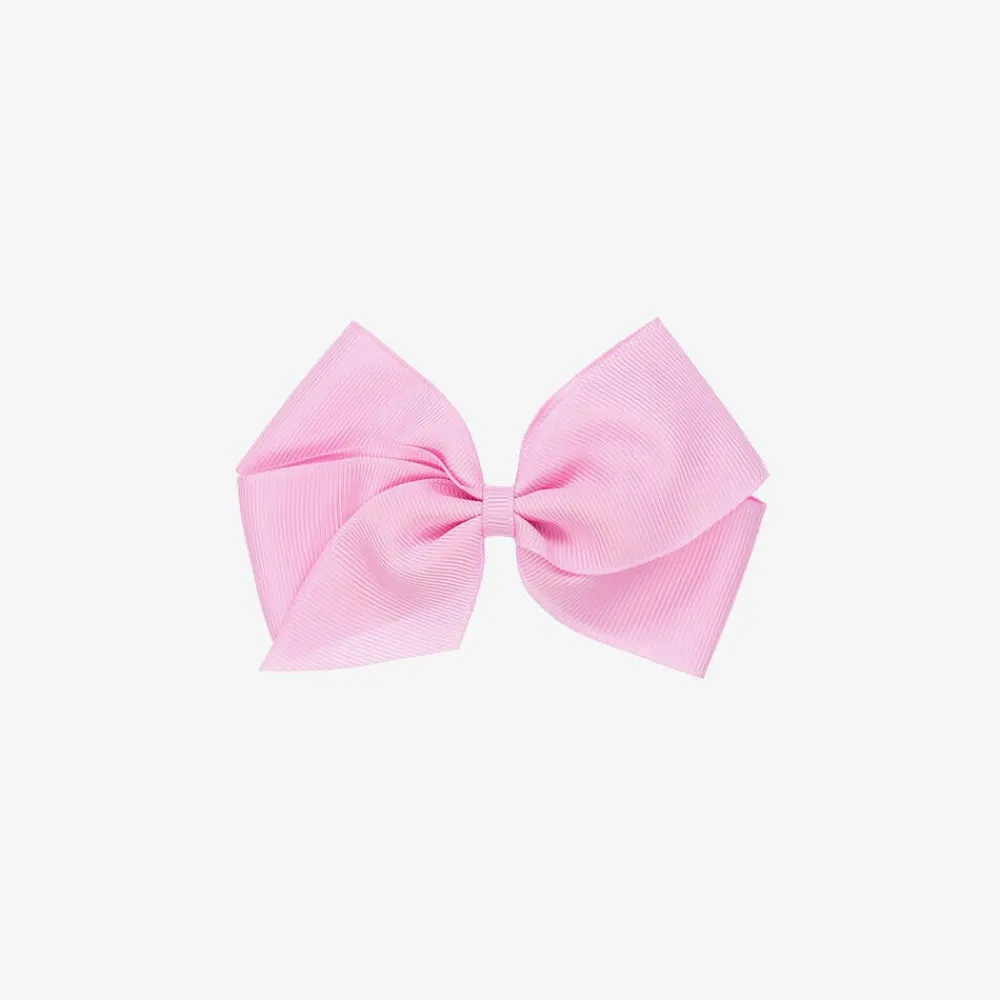 Girls lovely candy pink bow hair clip by Peach Ribbons, handmade from grosgrain ribbon and set on a metal clip.