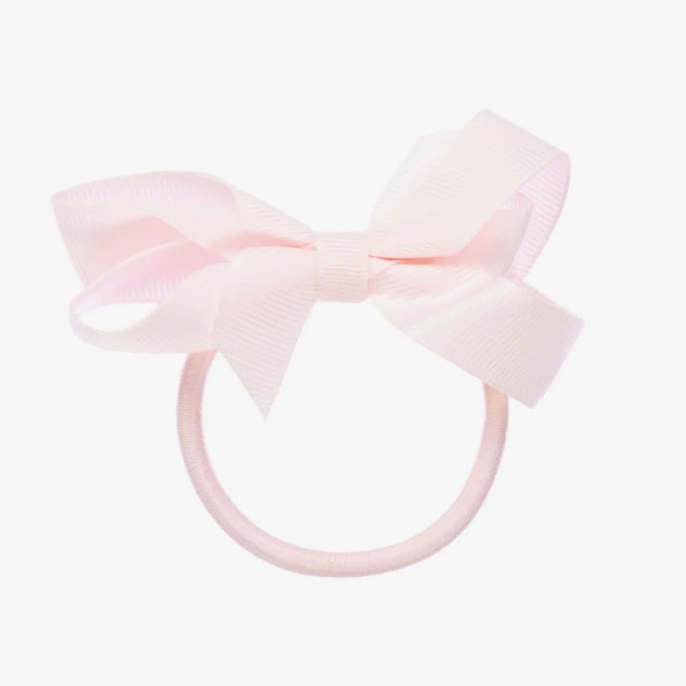 Girls classic hair elastic with a pale pink grosgrain ribbon bow by Peach Ribbons.