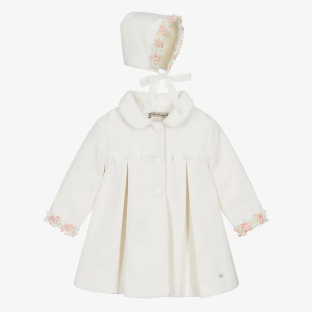 Piccola Speranza Coats & Jackets*Girls Ivory Coat & Bonnet Set