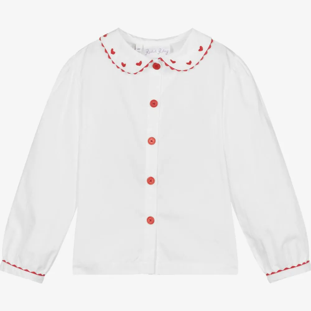Rachel Riley Tops*Girls White Cotton Heart Blouse Ivory