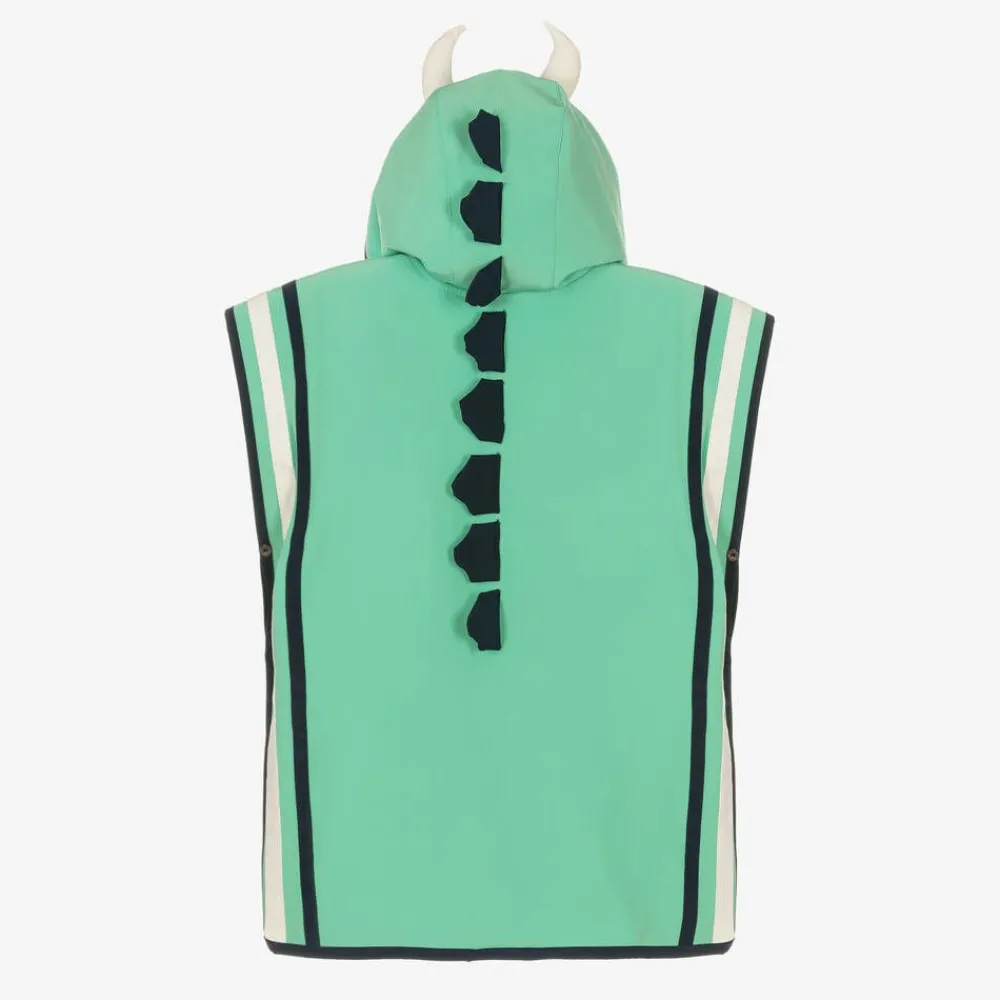 Designed to appeal to children and parents alike, this green hooded poncho towel from British brand Roarsome combines practical features with a look that boys and girls will love. Inspired by the brand's friendly Spike the Dinosaur character, it has a cute rubberised motif on the chest, with fun 3D details on the hood and back. The stylish design features a smooth waterproof outer layer, made from recycled material, with popper fastenings at the side allowing it to be laid flat. A soft, cosy and absorbent cotton towelling lines the poncho and the hand pocket, making it ideal for the beach, swimming pool or bathtime.