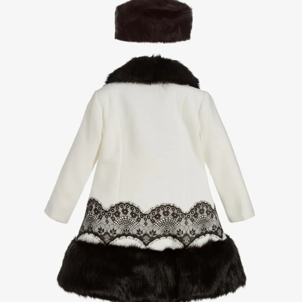 Romano Princess Coats & Jackets*Girls Ivory Coat & Faux Fur Hat Set