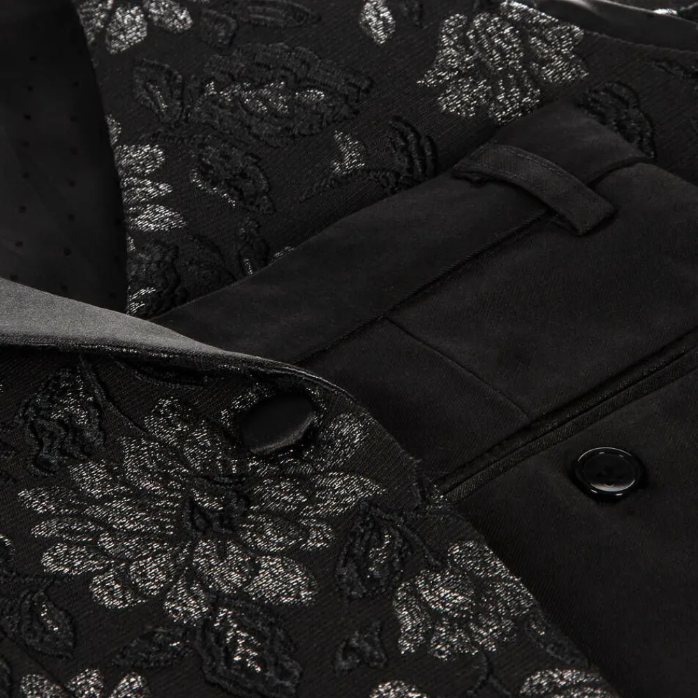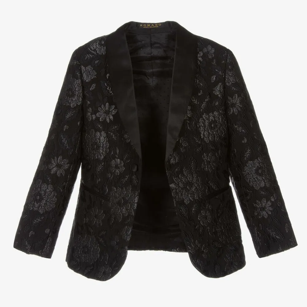 Be the first to review “Romano Suits*Boys Black Floral Jacquard Suit” Cancel reply