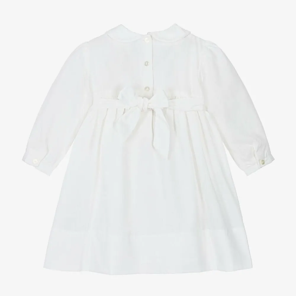 Sarah Louise Dresses*Baby Girls Ivory Cotton Hand-Smocked Dress